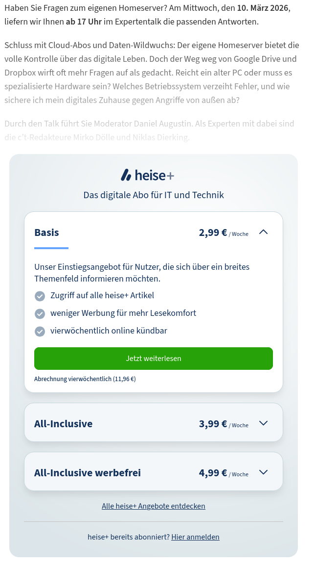 heise+ | heise+ Expertentalk: Der eigene Homeserver: Speicher, Backup, Mediensammlung